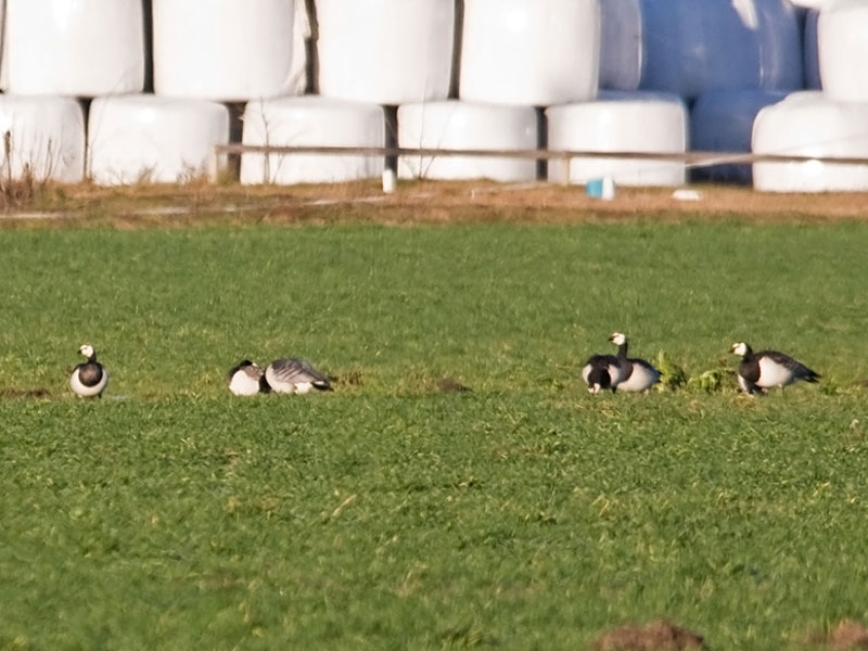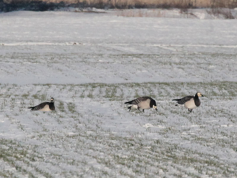 | 06.01.2012. Barnacle Goose (Branta leucopsis) 40 at Klampju ciems, Nica fields, Nica county (U.Piterans, R.Rekmanis). Canada Goose (Branta canadensis) 20 at Nica fields, Nica county (U.Piterans, R.Rekmanis). Largest flocks in winter month for both geese species. Common Reed Bunting (Emberiza schoeniclus) 2 at Zirgu sala, Liepaja (K.Millers).