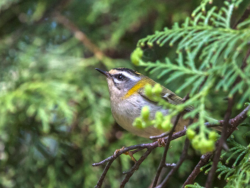 02.05.2019. Sārtgalvītis (Regulus ignicapilla) 1 dzied Lauteros, Salacgrīvas n. (E. & V. Smislovi).