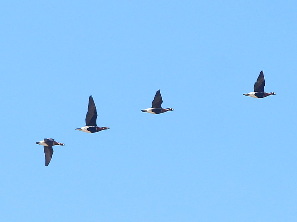 08.05.2020. Īsknābja zoss (Anser brachyrhynchus) 1 Baltinavas apkārtnē, Baltinavas n. (K.Millers). Kanādas zoss (Branta canadensis) 3 migrācijā uz NNE Gaujas grīvā, Carnikavas n. (I.Deņisovs).