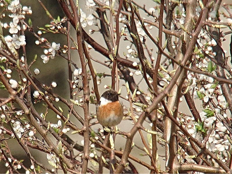 26.04.2019. Tumšā čakstīte (Saxicola torquatus) 1 T Saraiķu muižas apkārtnē, Pāvilostas n. (I.Mārdega). 19. novērojums Latvijā.